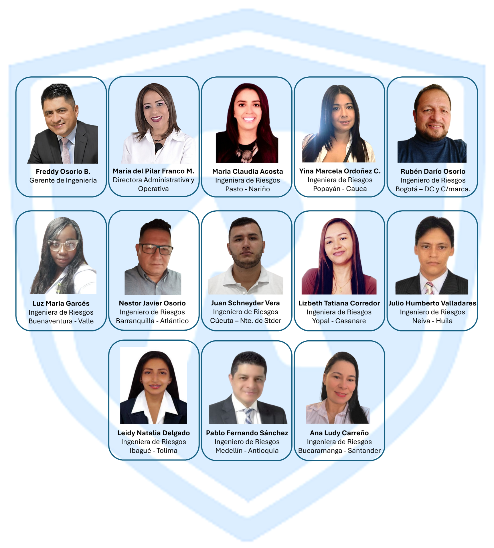 Contamos con un equipo de ingenieros altamente capacitados y con presencia en las principales ciudades, lo que nos brinda una amplia capacidad de respuesta. Esta estructura nos permite disponer de personal idóneo para atender cualquier solicitud de inspección, garantizando un servicio ágil y eficiente. Nuestra experiencia y compromiso nos posicionan como un aliado estratégico en la gestión de riesgos para nuestros clientes.